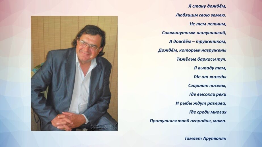 «А после ждать весну…» — под таким названием прошел сегодня литературный вечер, посвященный творчеству Гамлета Арутюняна. Гамлет Арменакович Арутюнян — Почетный гражданин города Енисейска, известнейший в регионе хирург-онколог, доктор медицинских наук, академик и талантливый поэт. Он автор нескольких поэтических сборников и множества журнальных публикаций, член Красноярского отделения общественной организации “Союз российских писателей”. Участниками встречи…