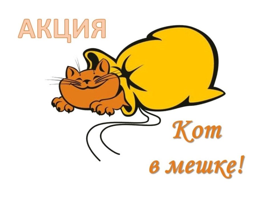 Вы любите сюрпризы?! Мы – очень!!! Поэтому запускаем новую акцию “Кот в мешке!” Суть акции: вы берете книгу, которая спрятана “в мешок”! А открываете только дома! Читаете книгу, а когда сдаёте, оставляете небольшой отзыв об участии: понравился/не понравился вам “кот”