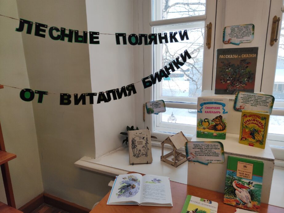 8 февраля в детской библиотеке состоялось открытие выставки “Лесные полянки от Виталия Бианки”, посвященной 130-летию со дня рождения писателя Первыми посетителями выставки оказались ребята из 6 класса МАОУ СШ №1 имени И.П. Кытманова Наши читатели показали, насколько они знакомы с творчеством Виталия Валентиновича Бианки: они с лёгкостью разгадывали загадки о птицах и животных, о которых и…