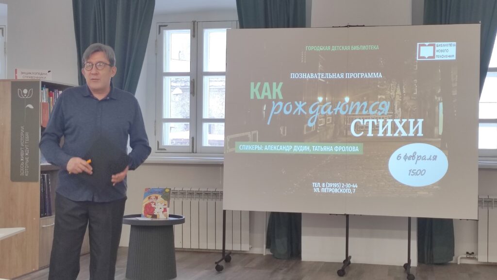 6 февраля в уютных пенатах Детской библиотеки представители клуба «Автограф» — Татьяна Александровна Фролова и Александр Дудин провели творческий вечер для школьников.