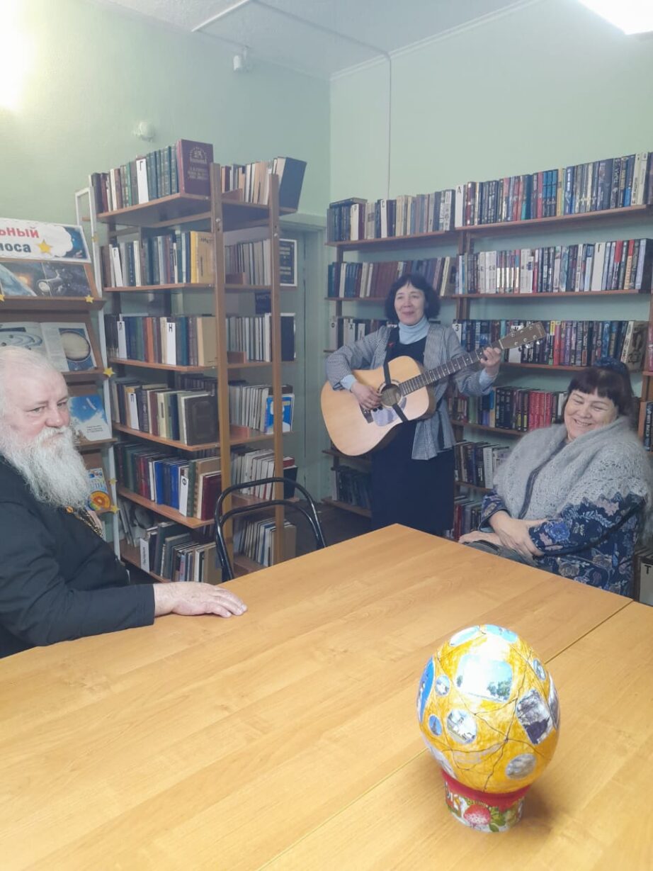 В канун великого праздника в библиотеки – филиале 2 собрались жители г. Енисейска на встречу «Светлый праздник Пасхи». Среди гостей был представитель духовенства настоятель Успенского кафедрального собора иеромонах Тихон., который благословил встречу и поведал гостям о истории христианского праздника. Надежда Воронина и Светлана Грабчук поздравили всех присутствующих музыкальными произведениями. Благодаря всем присутствующих, встреча прошла душевно…