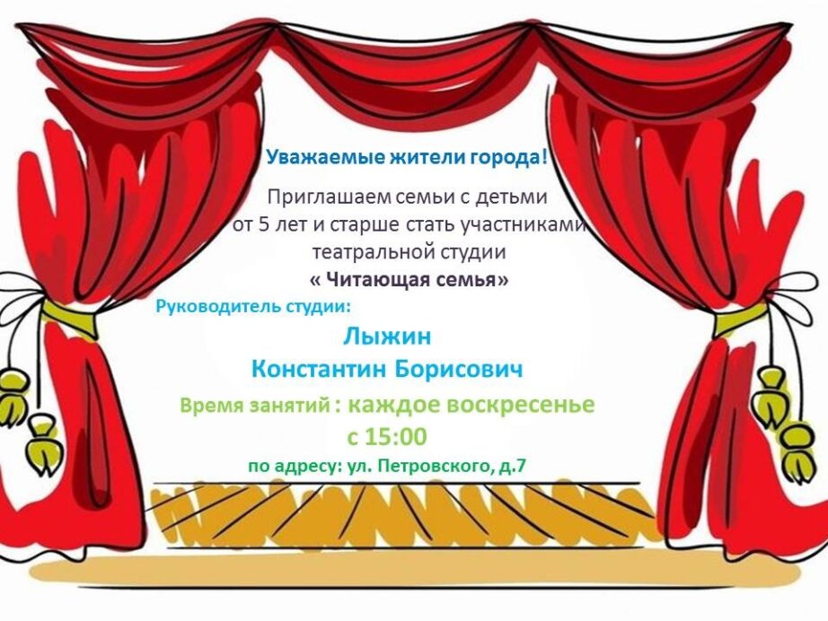 2 октября прошло первое занятие театральной студии «Читающая семья», под руководством Константина Борисовича Лыжина. Ребята окунулись в волшебный мир театра. Известно, что один из главных элементов театра – игра, поэтому в этот день участники разыгрывали различные сценки, и поставили сказку. Напоминаем: – стать участниками театральной студии «Читающая семья» могут семьи с детьми от 5 лет…