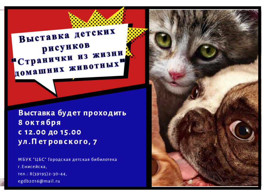 Приглашаем принять участие в выставке детских рисунков «Странички из жизни домашних животных». Выставка детских рисунков «Странички из жизни домашних животных» проводится в рамках проекта «Губернский клуб любителей домашних животных», организатором которого являются медиагруппа «Комсомольская правда» и компания «Губернские аптеки». В Выставке детского рисунка могут принять участие воспитанники дошкольных учреждений и учащиеся общеобразовательных г. Енисейска в…