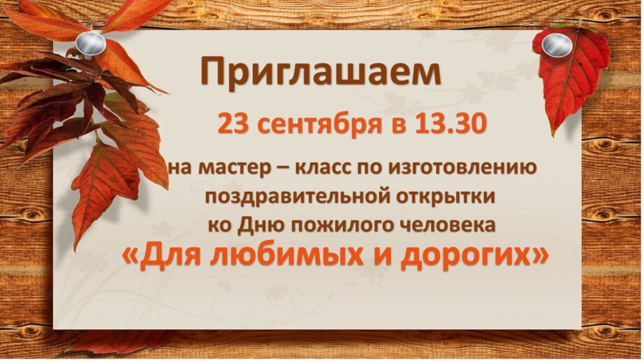 Мастер – класс по изготовлению поздравительной открытки «Для любимых и дорогих» Друзья, 1 октября праздник. Праздник душевной теплоты и мудрости, он посвящен людям элегантного возраста, за плечами которых – богатый жизненный опыт, чьи сердца всегда наполнены добротой. Праздник у наших бабушек и дедушек. Предлагаем поздравить наших пожилых жителей города. Дома или на мастер-классе в библиотеке…
