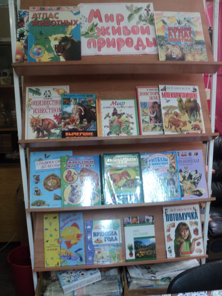 « Мир живой природы». На ней представлены атласы животных, «Большой атлас животных», «Мир живой природы, « Моя первая иллюстрированная энциклопедия», «Животный мир земли». В изданиях содержится много иллюстраций, фотографий, много интересного познавательного материала о птицах, рыбах, бабочках, кошках, собаках. Книги «Сладких снов до весны (Как зимуют животные и насекомые)», « Пьют ли рыбы воду (Первые…