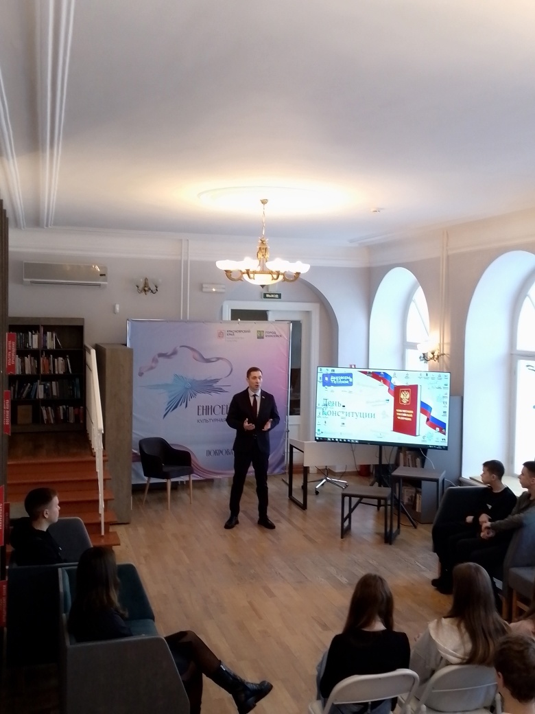 Конституция- главный нормативный правовой акт России. В этом году исполнилось 30 лет со дня принятия Конституции России. 9 декабря в городской библиотеке для старшеклассников была проведена информационная лекция «30 лет Конституции РФ». В проведении лекции принял участие депутат ЗС Красноярского края Петренко Евгений Александрович.