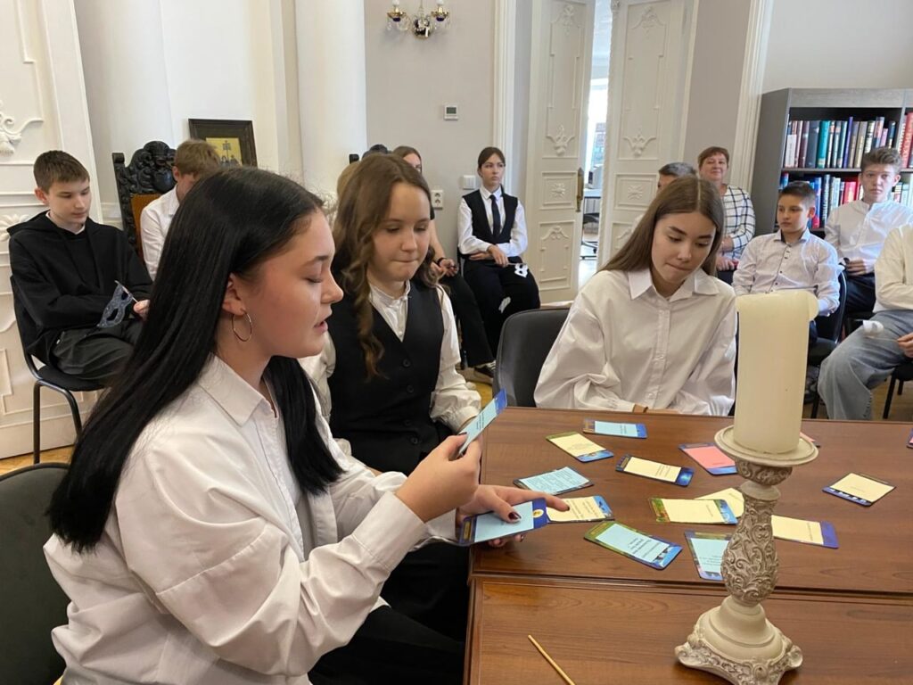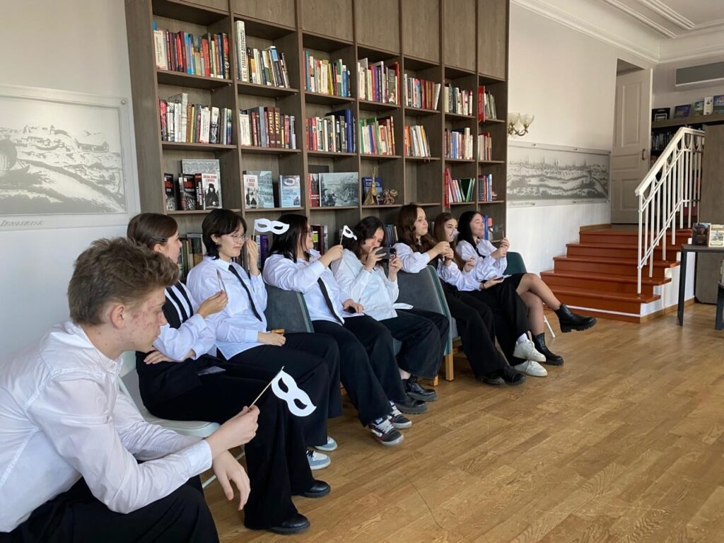 Они познакомились с содержанием пьесы и главными героями, побывали на маскараде, разложили литературный пасьянс, поиграли в «Фанты» и «Ручеек»!